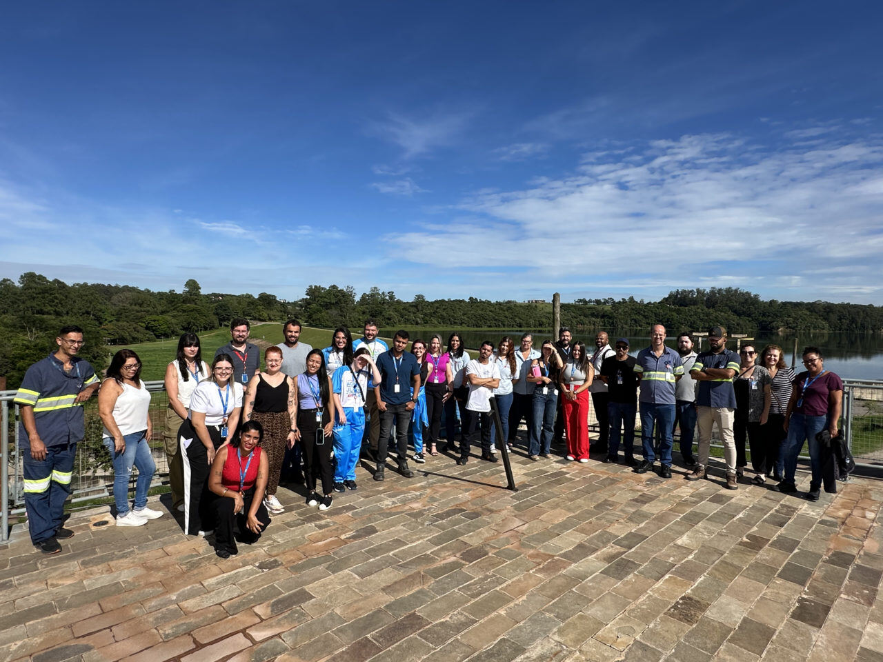 Durante o percurso, os participantes conheceram a Estação de Tratamento de Água do Anhangabaú (ETA-A) e a Estação de Tratamento de Esgoto (ETE), etapas essenciais do processo que garantem o saneamento de qualidade.