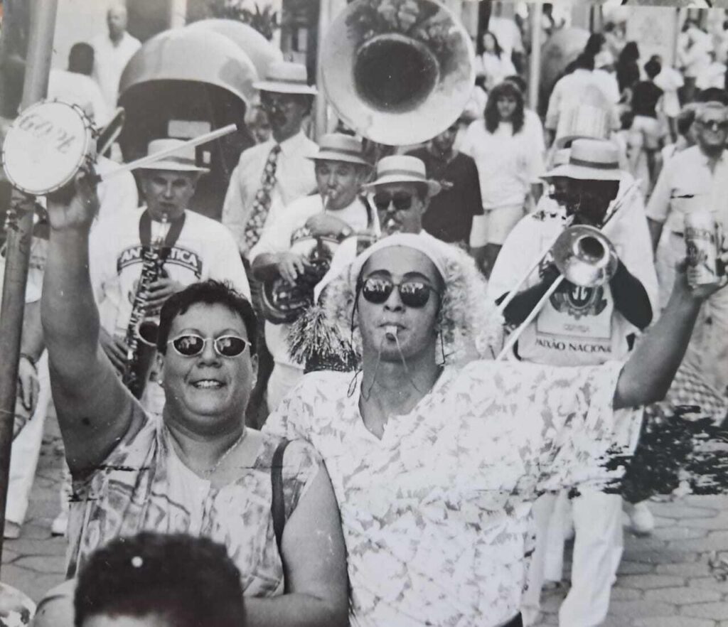 Entre risadas, taças e boas intenções, surge dona Alvarina, mãe do então prefeito Walmor Barbosa Martins, sempre presente e simpática. Conversava com todos, com a taça em punho. Em um desses momentos, observei algo suspeito e disparei: