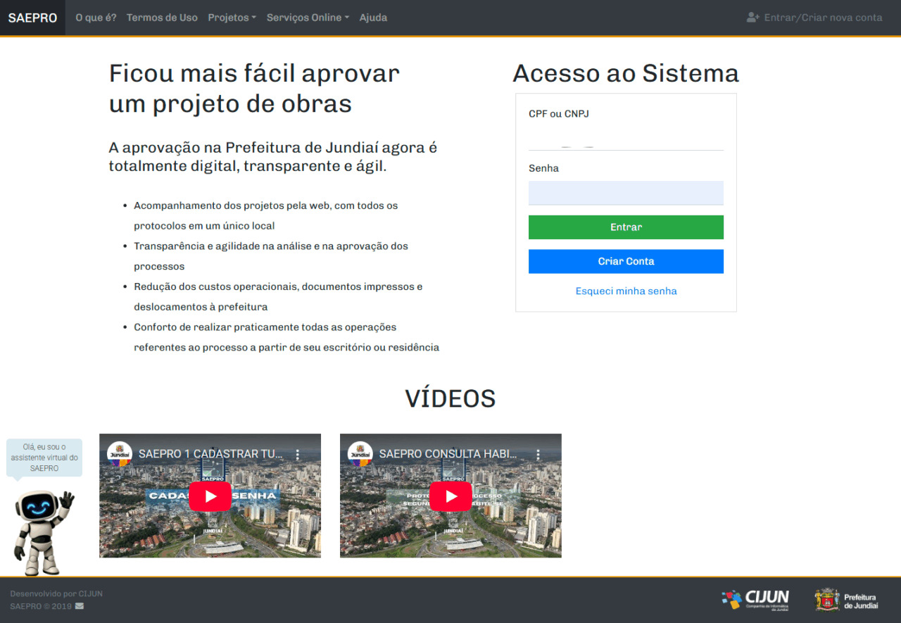 A Prefeitura de Jundiaí lançou um assistente virtual (chatbot) com inteligência artificial. Ele foi criado para atender as demandas relacionadas ao SAEPRO (Sistema de Aprovação Eletrônica de Projetos de Obras).