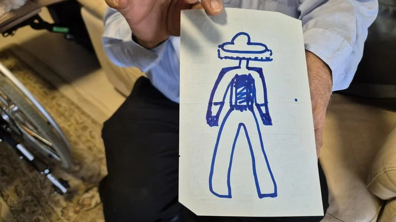 Tziporet Carmel descreve que naquela manhã despertou e viu fora de sua janela “uma grande caixa luminosa alaranjada, como uma caixa de laranjas. Ao lado, uma figura muito alta — cerca de três metros de altura — usando um chapéu de apicultor com algo parecido com uma tela sobre ele.”