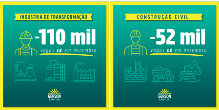 Reforma trabalhista – O presidente do PDT e ex-vereador Gerson Sartori, postou em seu Facebook: “a questão já não é mais ser contra ou a favor desta reforma trabalhista. Os dados de dezembro mostram que a reforma como foi feita simplesmente não funciona. Isso não é opinião. É um fato! Os partidos que defenderam e os deputados que votaram a favor da reforma do Temer apoiaram o desemprego e não a geração de emprego!”
