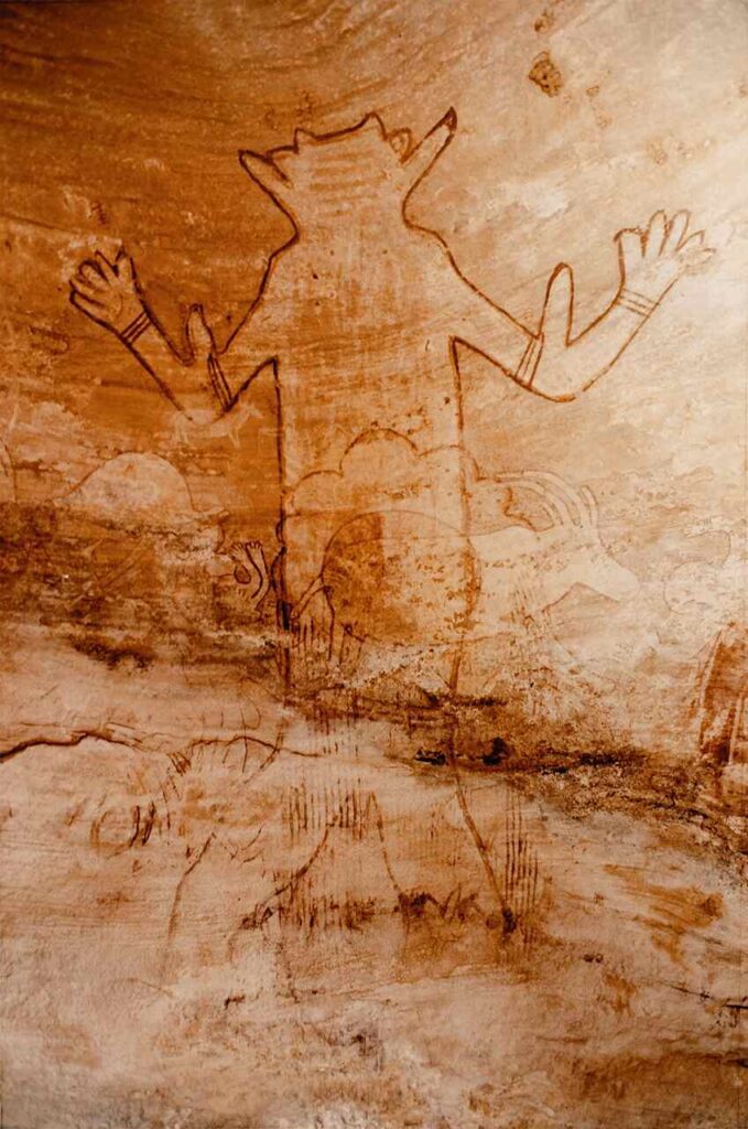 Conexão global e o desafio à lógica – No entanto, a rigidez geométrica do corpo e os “adornos” que se assemelham a um robô, tornam a explicação do “xamã com peles” insuficiente para muitos. Essa figura de Pecos não está sozinha. Sua morfologia faz parte de um fenômeno global de arte rupestre que evoca a teoria dos antigos astronautas: