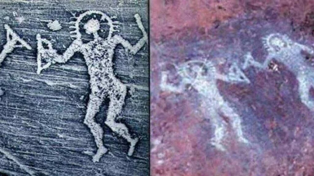 Tassili n’Ajjer (Argélia): No Saara, figuras como o famoso “Grande Deus Marciano” mostram seres com cabeças bulbosas e o que parecem ser trajes completos, também sem relação com a cultura dos caçadores-coletores locais.