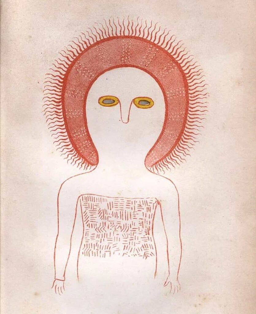 Kimberley (Austrália): Figuras aborígenes pintadas com cabeças grandes, sem feições faciais (ou com o que parecem ser capacetes e viseiras) e, às vezes, corpos flutuantes. Conhecidos como Wandjina, esses seres são interpretados por teóricos como representações de visitantes extraterrestres.