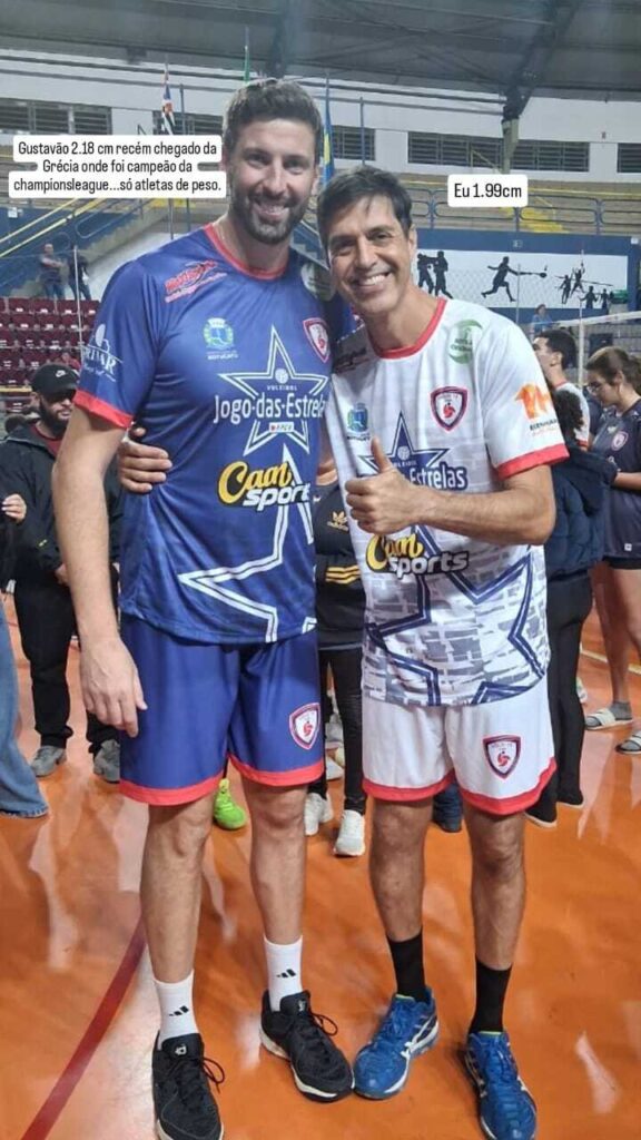 Joguei com os melhores do país. Joguei com o Janelson, com o Montanaro, que são campeões, né? O Montanaro é da geração de prata em Los Angeles! Também joguei com o Maurício, campeão olímpico em 1992, em Barcelona. Tem muita gente boa. Joguei com o Giba e o Ricardinho, dois caras sensacionais. Tenho amizade com todos.