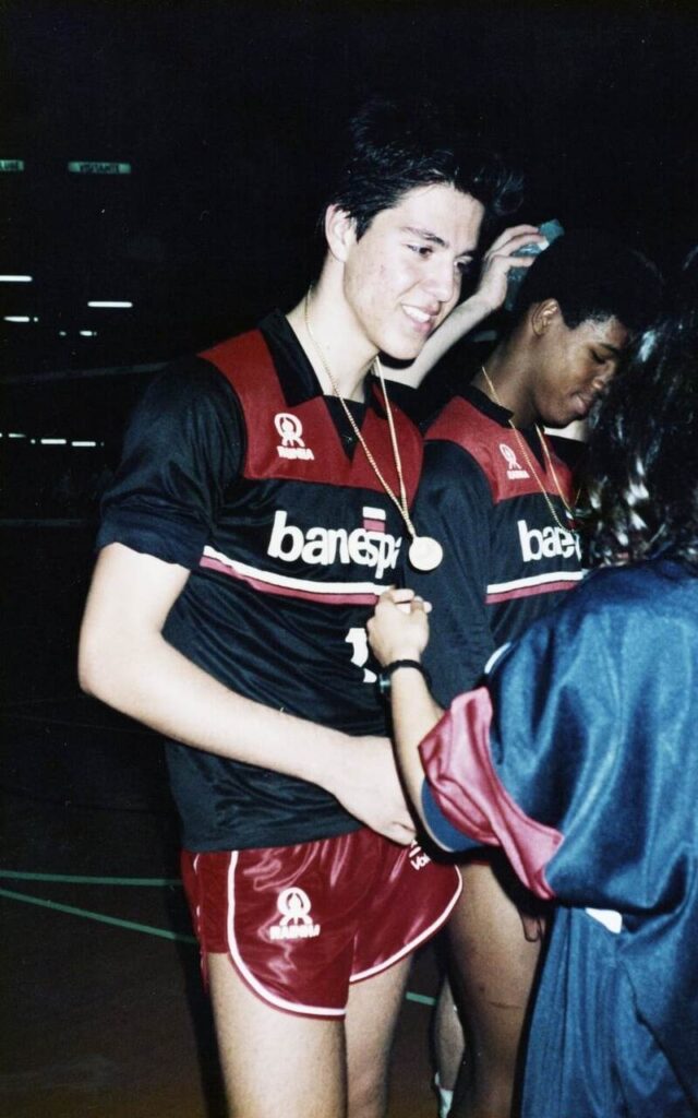 Eu estudei no Sesi. Minha mãe era professora da unidade da Ponte São João, onde trabalhou por quase 40 anos. Ela dava aula de todas disciplinas para a quarta série. Eu tinha bolsa no Sesão, onde estudei da primeira à sétima série. Eu gostava muito de praticar esportes, educação física, então eu jogava. Na época gostava muito de basquete, fazia atletismo, jogava o minivôlei, ainda no Sesão. Passei a jogar alguns torneios pela escola. Fui crescendo na modalidade. Até que joguei por um time adulto da cidade. Enfrentamos o Banespa, uma equipe que gostava muito de assistir pela televisão, na TV Cultura. Depois, fui assistir a um jogo da base do Banespa contra um time adulto, em São Paulo. Os garotos ganharam jogando de forma ousada. O técnico do Banespa, o Branco, me chamou para conversar. Ele sabia que eu estava me destacando em Jundiaí e me convidou. No primeiro ano, eu pegava o Cometa para eu treinar. Meu pai ia comigo.